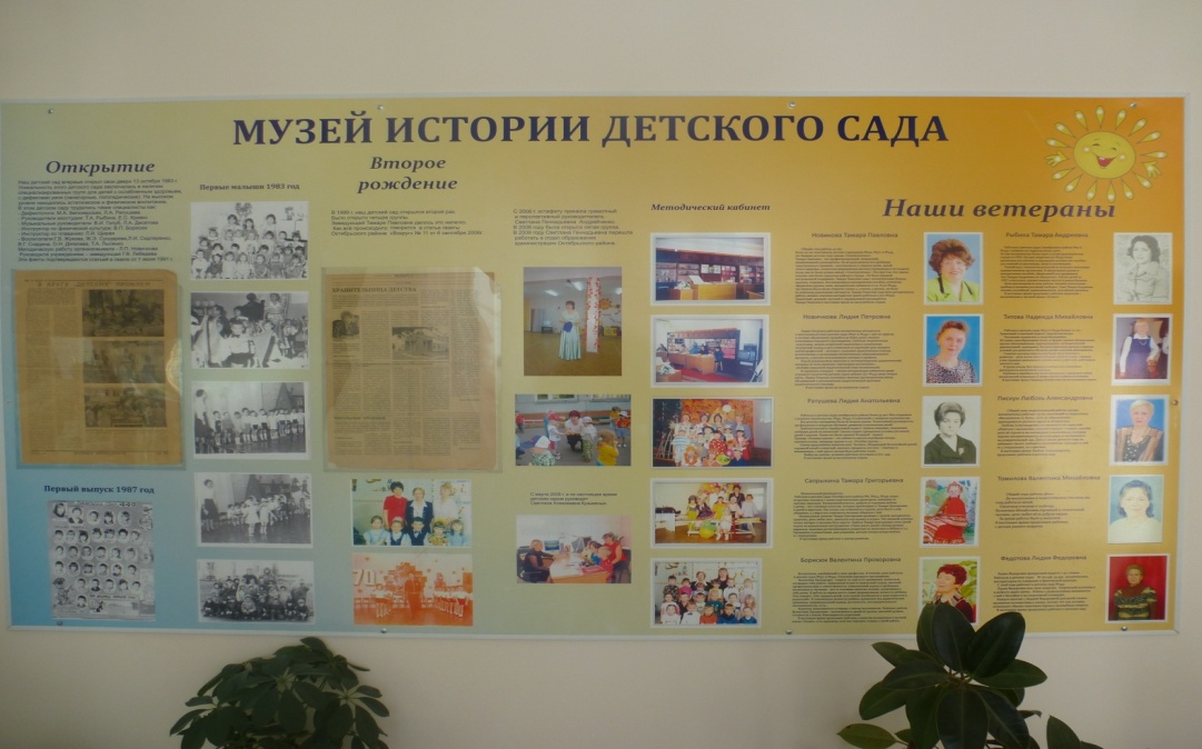 Становление мини-музея в нашем детском саду началось с 2013 года, когда педагогическим коллективом во главе с руководителем Кузьминых Светланой Алексеевной был разработан педагогический проект «Организация системы работы ДОУ в рамках музейной педагогики». Целью музейной педагогики является создание условий для развития личности путем включения её в многообразную деятельность музея.