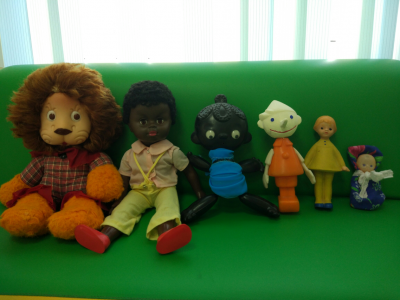 Особо любимой экспозицией для детей является экспозиция «Игрушки нашим мам, пап, бабушек и дедушек». В ней собраны более 30 экспонатов – куклы (Барби, негритенок, барышня), пупсы, самолет, деревянный грузовик, телефон, резиновые игрушки, мягкие игрушки, набитые опилками, железный конструктор, головоломки. Детям интересно рассматривать и играть с этими игрушками. Данная экспозиция постоянно пополняется с помощью родителей и педагогов.