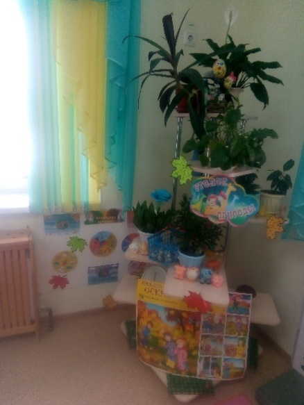 В группе оформили предметно развивающую среду, изготовили наглядные материалы на тему «Осень». Уголок природы дополнили календарем для наблюдения сезонных изменений в природе, благодаря которому дети ежедневно наблюдают за погодой на улице.