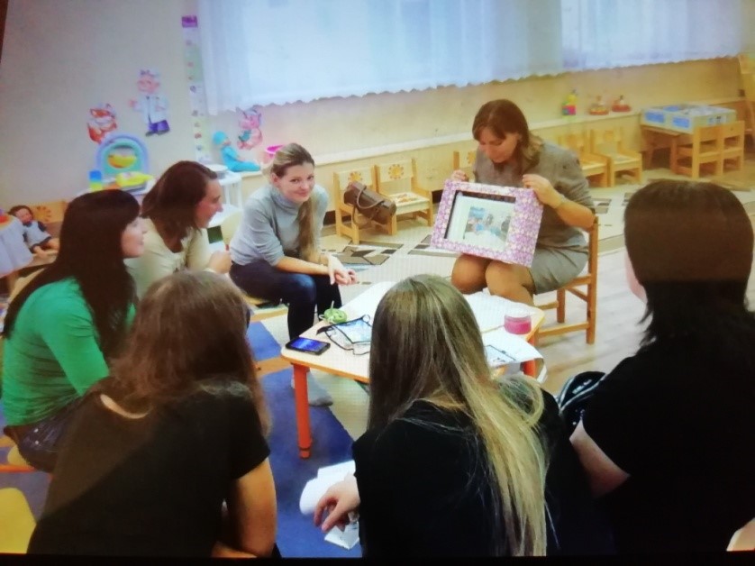 Также в начале сентября для успешного взаимодействия с семьями воспитанников я использовала такую форму работы, как «Посиделки». Наши посиделки я начинала с зажигания «Очага» (свечи), далее все вместе переходили к обсуждению адаптационного периода. На «Посиделках» были затронуты следующие вопросы: «Ваш ребенок пришел в детский сад» «Общение с детьми в семье», «Что должен уметь ребенок этого возраста», «Методы приучения ребенка к самостоятельности». На встречах создавалась атмосфера сотрудничества. На одних из таких «Посиделок» родителям был представлен диафильм «Мы привыкаем к детскому саду». Родители с интересом смотрели на своих детей, некоторые были удивлены, что их дети сами кушают, играют, гуляют. Такая форма работы сплачивает родительский коллектив, повышает педагогическую компетентность у родителей, снимает у них чувство тревожности, напряженности, позволяет научить родителей взаимодействовать со своими детьми. В конце совместно с родителями мы определяли тему следующих «Посиделок».