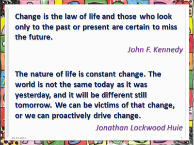 И в самом конце урока на слайд выводятся цитаты о том, что изменения – это неотъемлемая часть жизни и к ним нужно быть готовыми и учащимся предлагается прокомментировать эти высказывания.