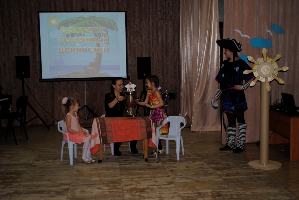 Продолжая сложившиеся традиции в «Маминой школе» и опираясь на интерес родителей к совместной деятельности, у наших педагогов родилась новая идея: организация и проведение семейного праздника «Сундучок семейных ценностей». Так как ребенок с самого рождения впитывает семейные ценности, ту атмосферу, в которой он вырос, и переносит это впечатление на свою собственную семью в будущем и на общество в целом. Поэтому самое ценное, что может дать семья – это родительская любовь. Ее невозможно дать другим способом, как только через семью и совместное проведение семейных праздников.